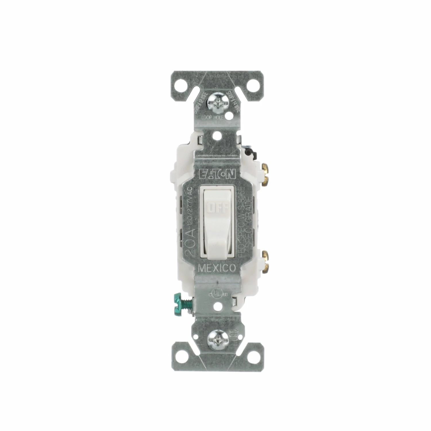 - White finish single-pole toggle switch offers 20A, 120/277V capacity designed to provide superior quality, reliability, and performance in a variety of commercial and residential applications